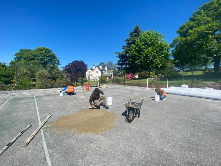 Our experienced teams work throughout the UK. Sports Overlays can be fitted over suitable existing bases, such as macadam and stone, providing a cost effective solution for refurbishment and renovation. They are quick to install, highly durable and easy to maintain!