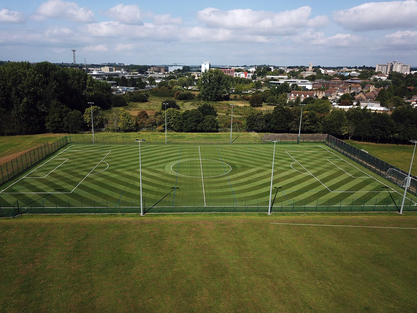 - Installation of the synthetic grass overlay is then undertaken, inlaid lines are cut and put in place.
